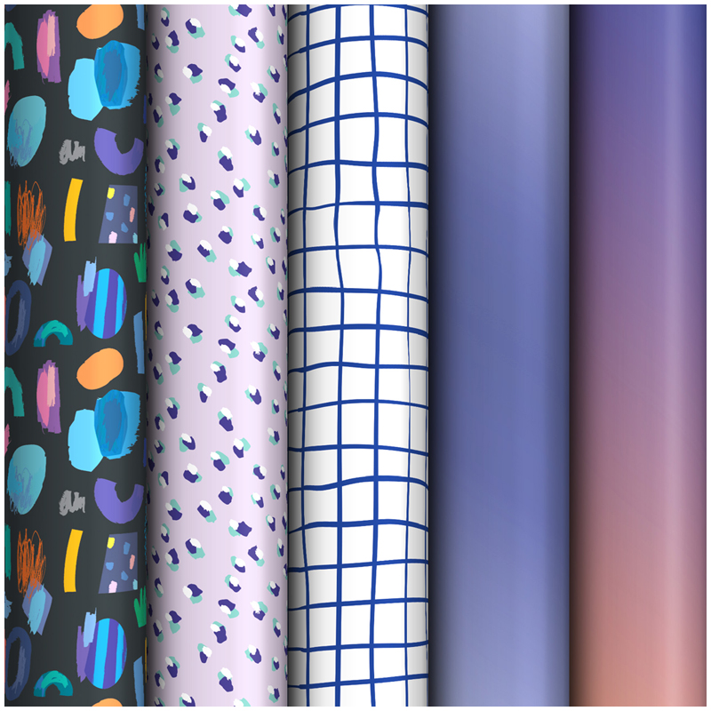 Упаковочная бумага глянц. 70*100см, MESHU "Градиент", 80г/м2, ассорти 5 дизайнов