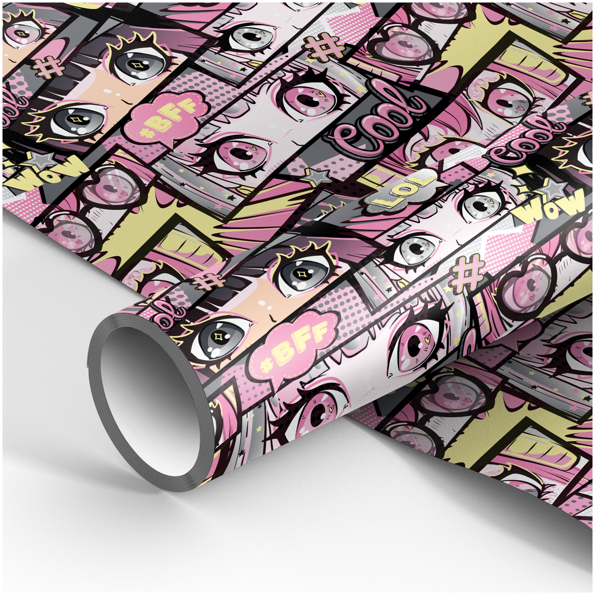 Упаковочная бумага глянц. 70*100см, MESHU "Anime girl", 80г/м2