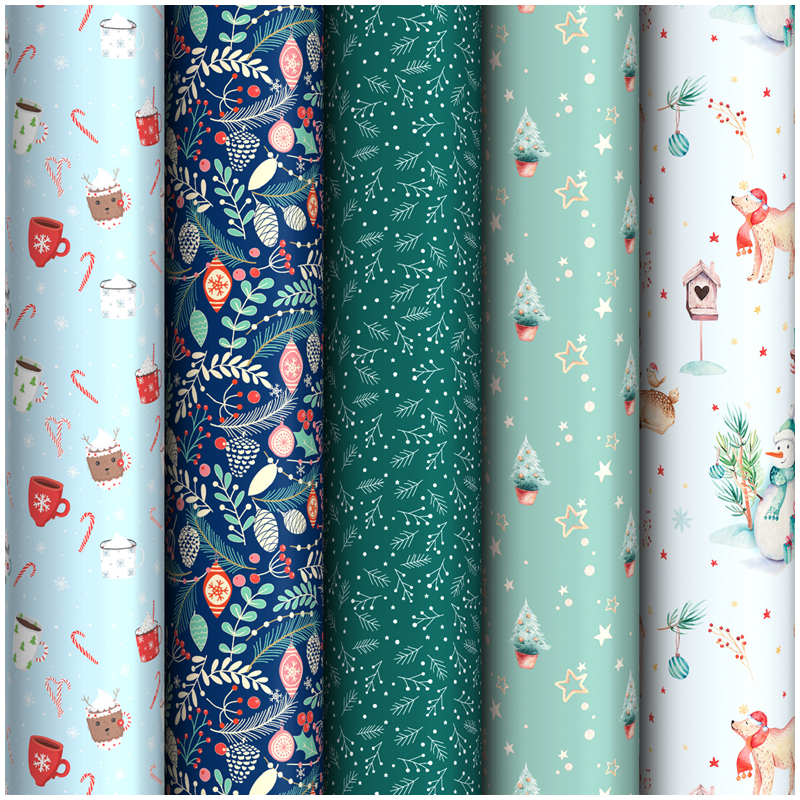 Упаковочная бумага глянц. 70*100см, MESHU "New year dreams", 90г/м2, ассорти 5 дизайнов