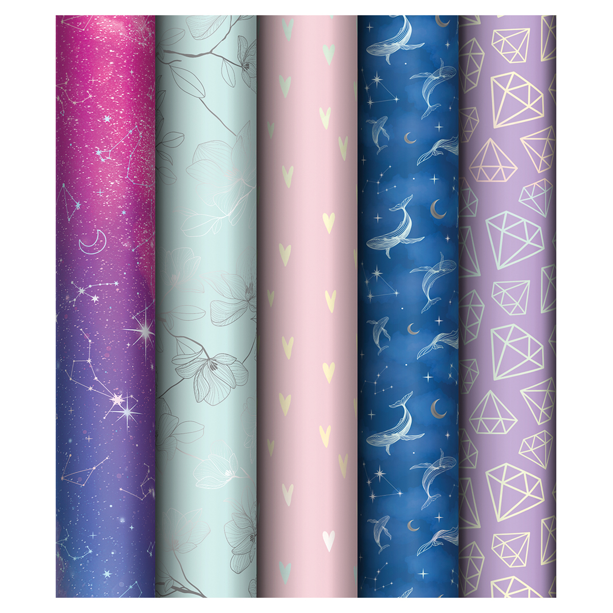 Упаковочная бумага глянц. 70*100см, MESHU "Brilliant effect", 90г/м2, отд. фольгой, ассорти 5 дизайнов