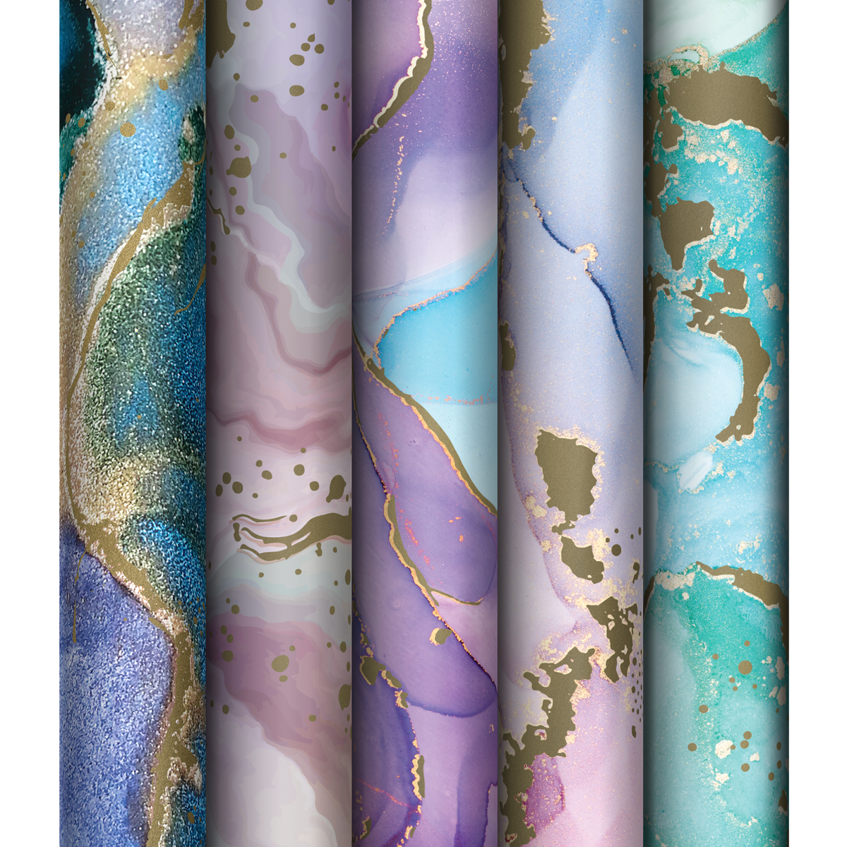 Упаковочная бумага глянц. 70*100см, MESHU "Мраморный стиль", 80г/м2, ассорти 5 дизайнов