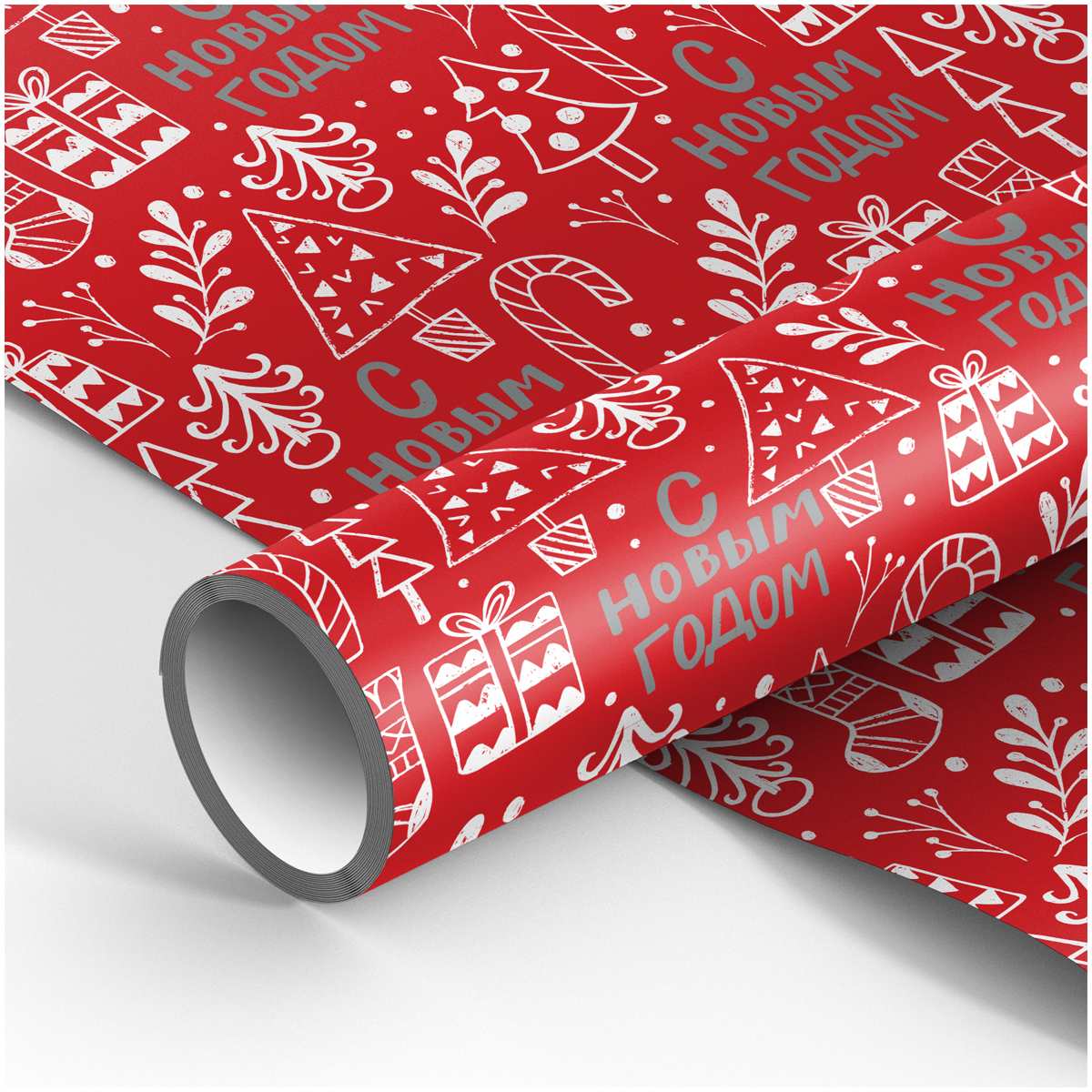Упаковочная бумага глянц. 70*100см, MESHU "С Новым годом", 80г/м2