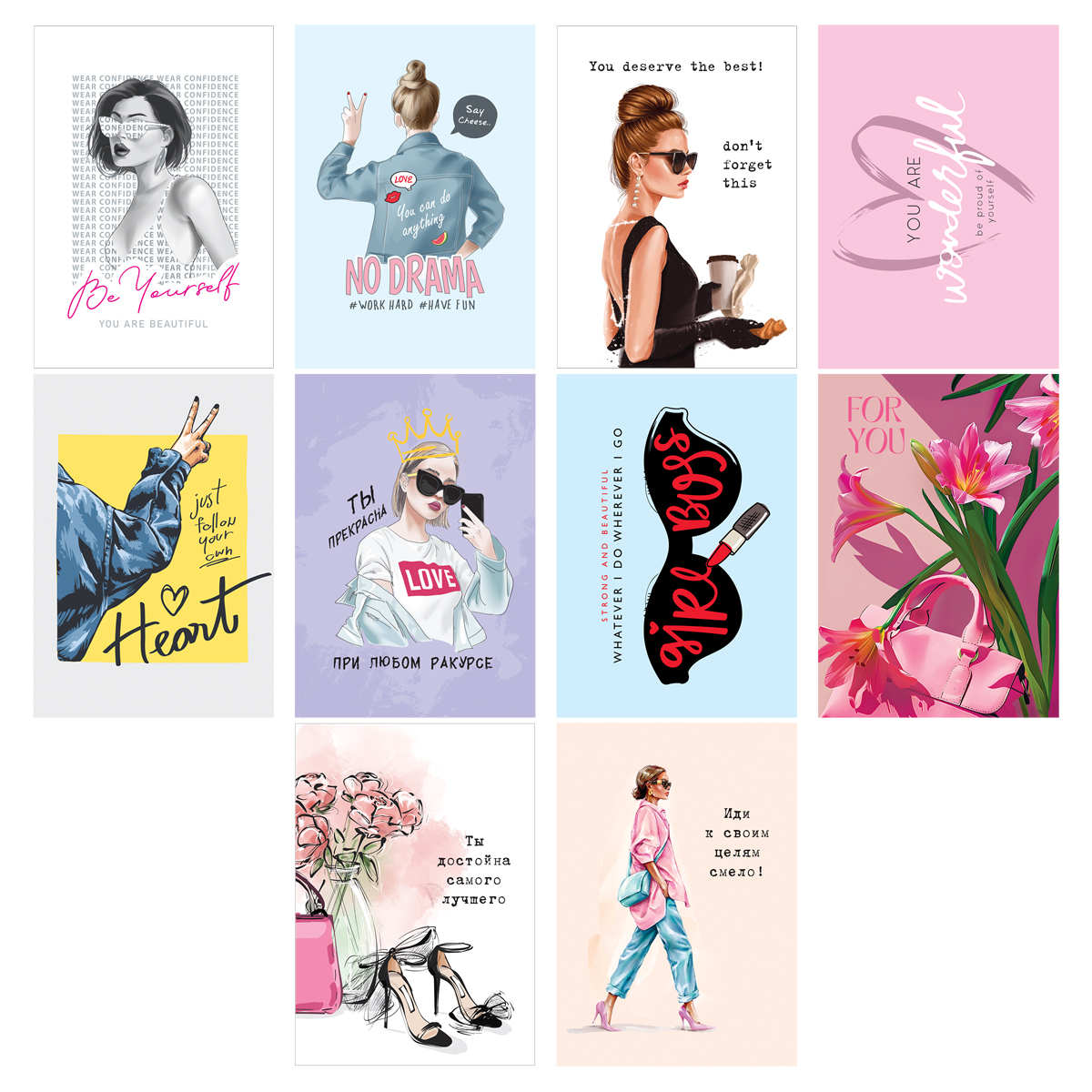 Набор открыток 30шт., "Girl power", глянцевая ламинация