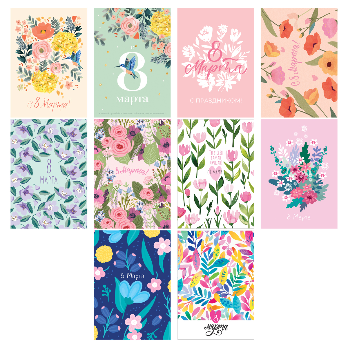 Набор открыток 30шт., "Women's day", глянцевая ламинация