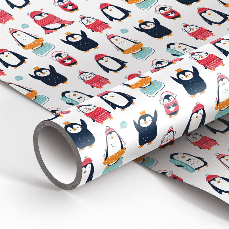 Упаковочная бумага глянц. 70*100см, MESHU "Christmas Penguins", 90г/м2