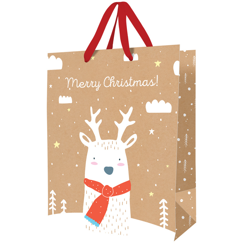 Пакет подарочный 26*32*12см MESHU "Christamas Deer", крафт