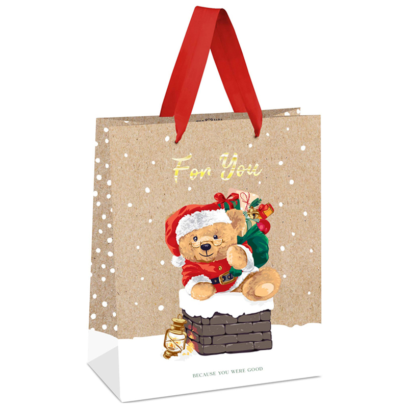 Пакет подарочный 18*23*10см MESHU "Christmas Teddy", крафт