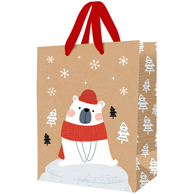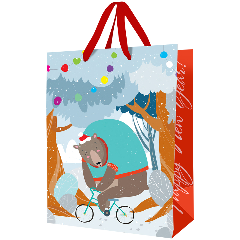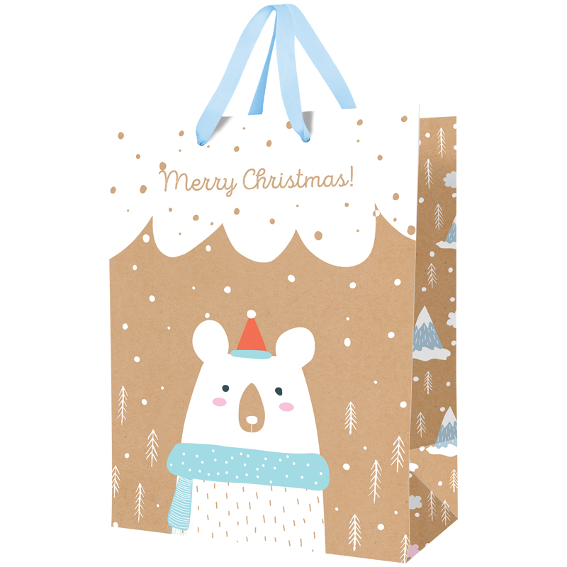 Пакет подарочный новогодний 18*23*10см MESHU "Snowy bear", матовая ламинация