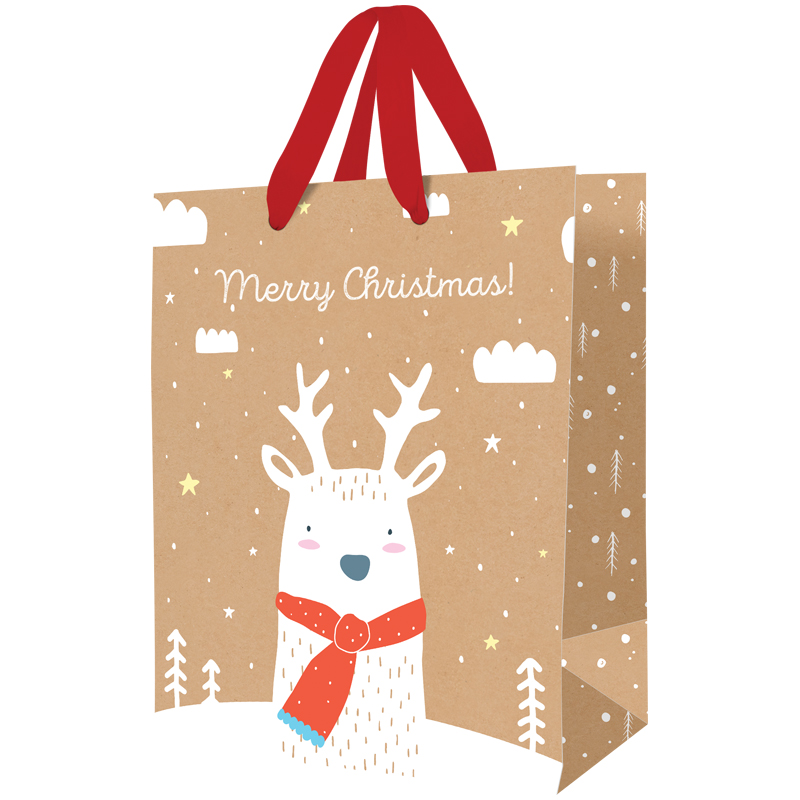 Пакет подарочный 18*23*10см MESHU "Christamas Deer", крафт