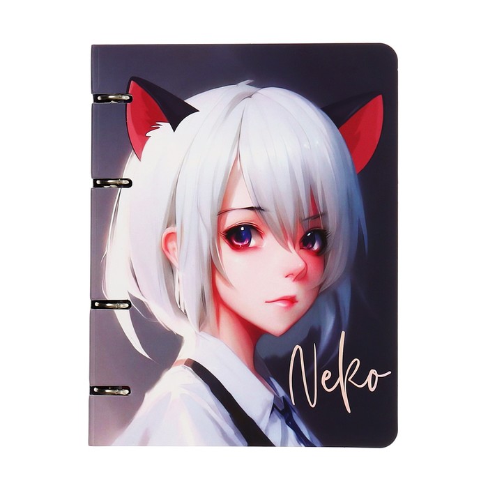 Тетрадь на кольцах А5, 100 листов в клетку MESHU Neko, обложка мелованный картон, матовая ламинация, тиснение фольгой