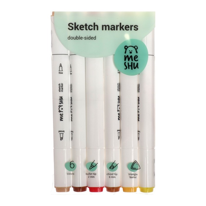 Маркеры для скетчинга двусторонние MESHU, 6 цветов (осенние цвета)