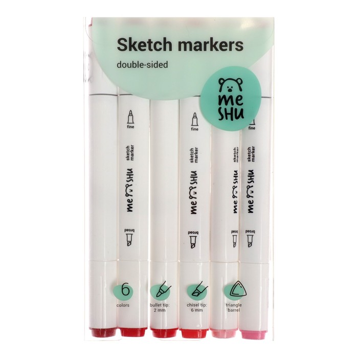 Маркеры для скетчинга двусторонние MESHU, 6 цветов (розовые цвета)