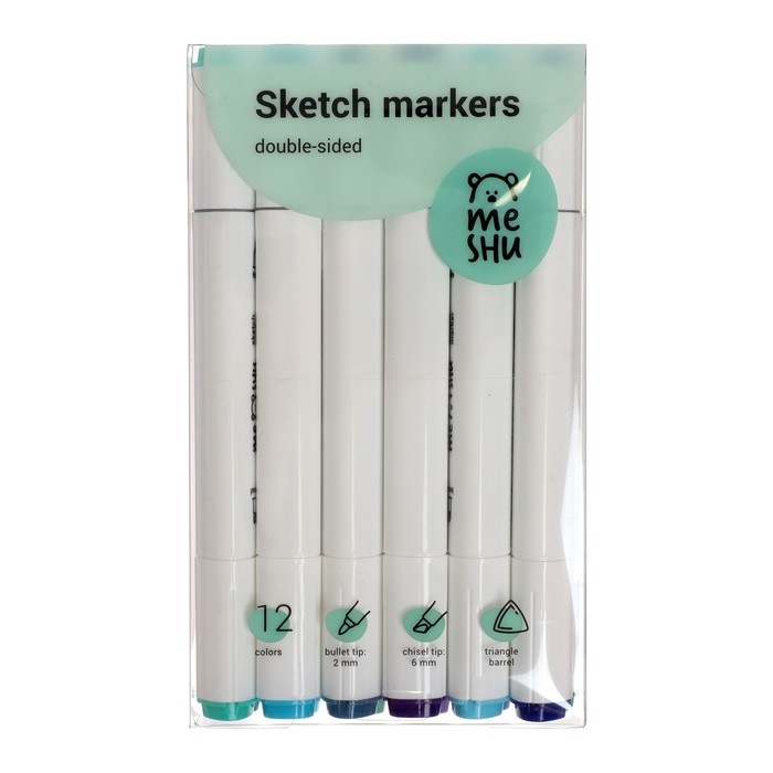 Маркеры для скетчинга двусторонние MESHU, 12 цветов (морские цвета)