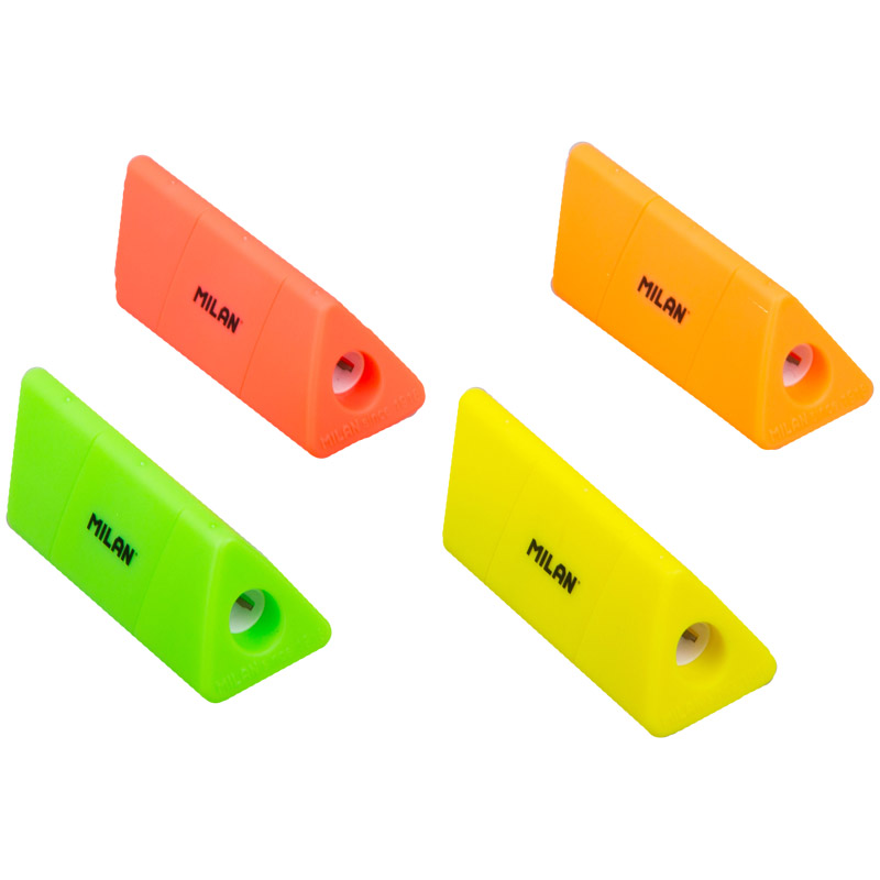 Точилка пластиковая с ластиком Milan "Compact Touch Duo", 2 отверстия, контейнер, ассорти