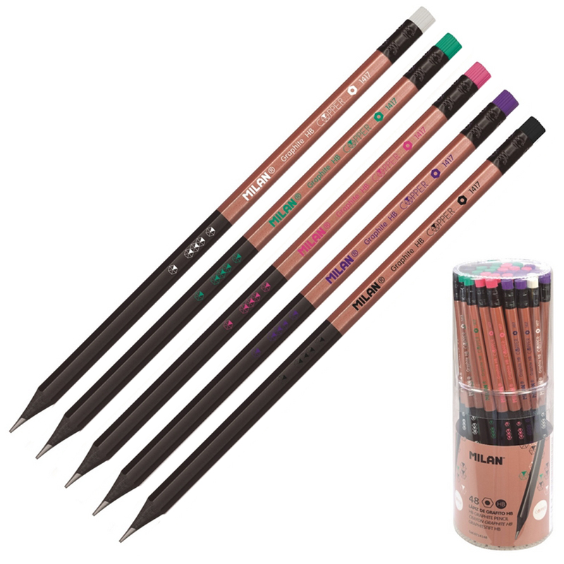 Карандаш ч/г Milan "Copper" HB, с ластиком, заточен, ассорти