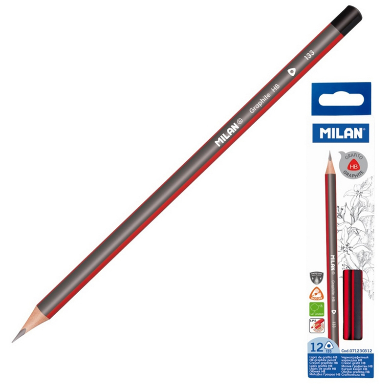 Карандаш ч/г Milan HB, с ластиком, трехгран., заточен.