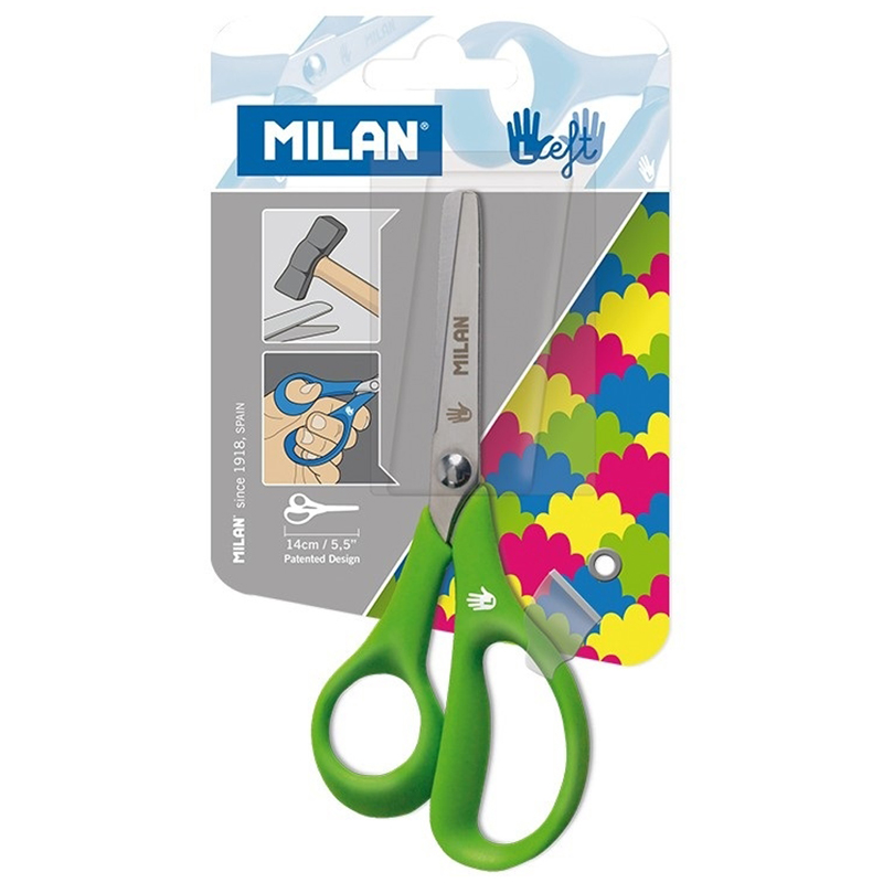 Ножницы детские для левшей Milan 14см, эргономичные ручки, ассорти, европодвес