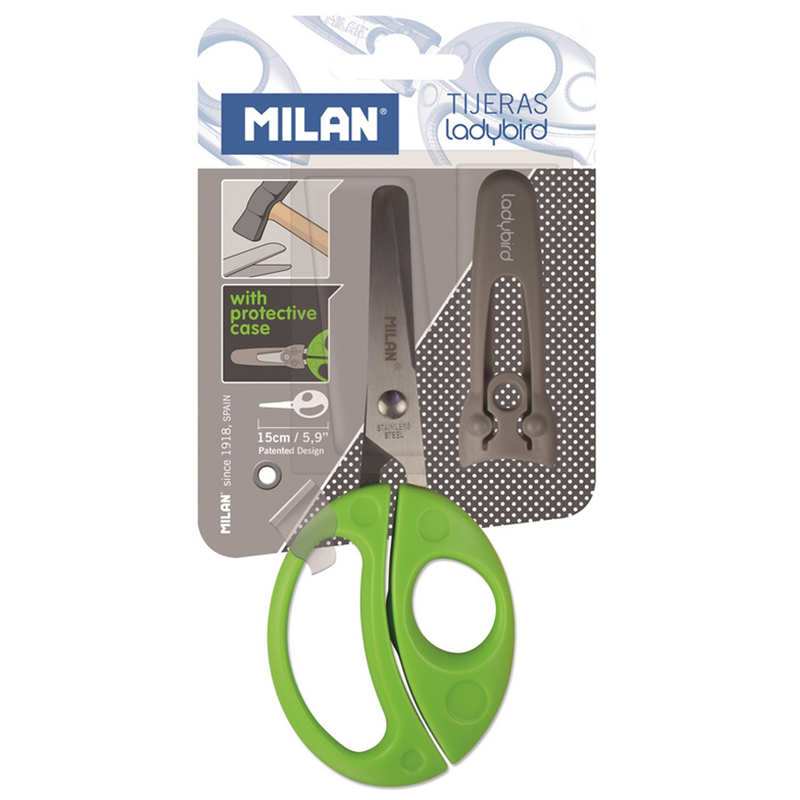Ножницы детские Milan "LadyBird" 15см, чехол, ассорти, европодвес