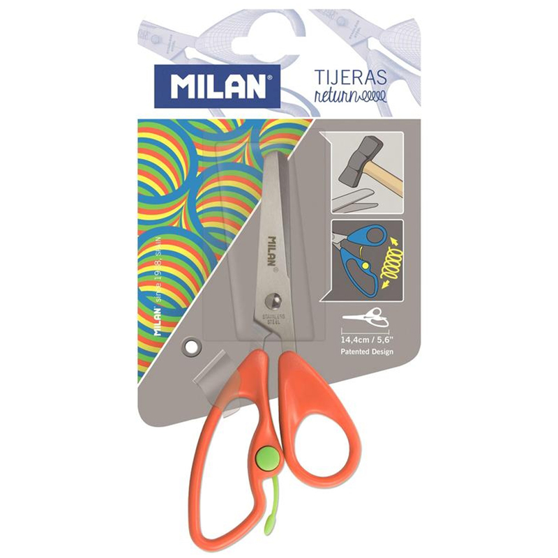Ножницы детские Milan "Return" 14,5см, авто механизм открывания, ассорти, европодвес