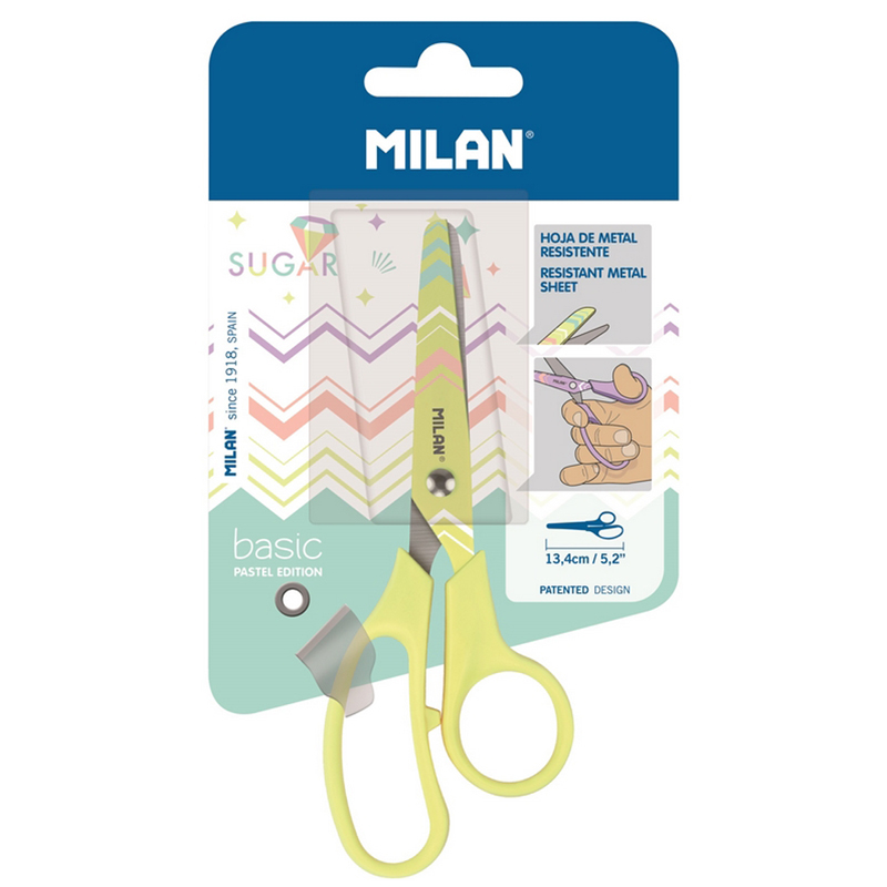 Ножницы детские Milan "Basic Pastel Edition" 13,4 см, эргономичные ручки, желтый, блистер