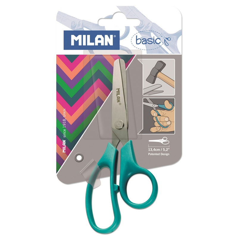 Ножницы детские Milan "Basic Colours" 13,4см, эргономичные ручки, ассорти, европодвес