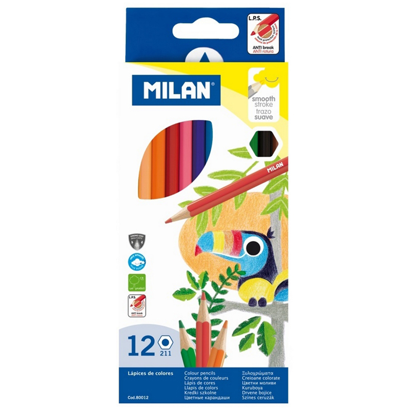 Карандаши цветные Milan "211", 12цв., заточен., картон, европодвес