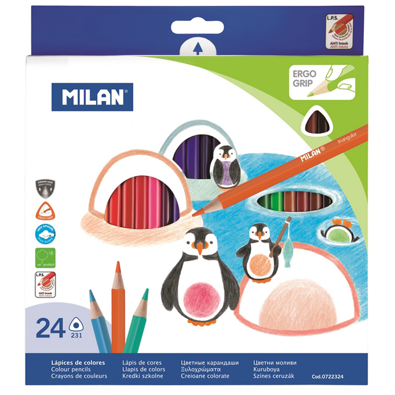 Карандаши цветные Milan "231", 24цв., трехгран., заточен., картон, европодвес