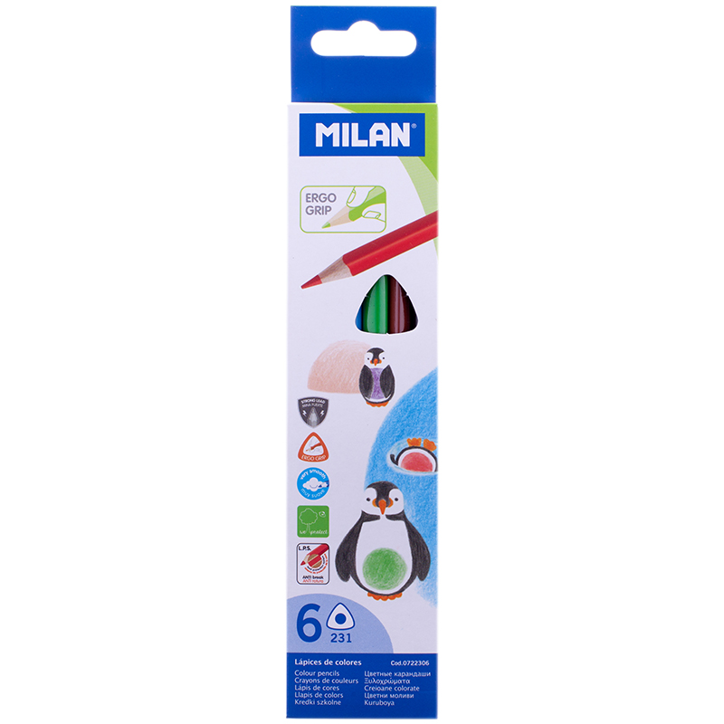 Карандаши цветные Milan "231", 06цв., трехгран., заточен., картон, европодвес