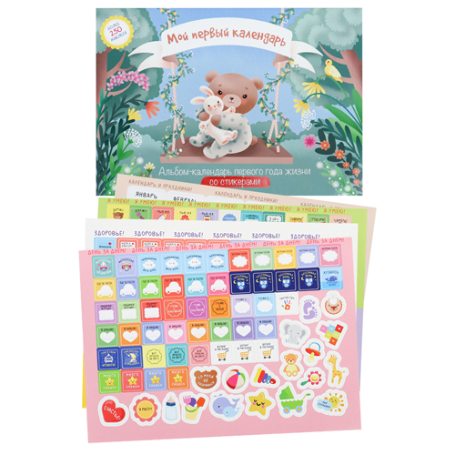 Календарь со стикерами А4 " Миленд " Мой первый год, Медвежонок с зайчиком, 12л + 4 л.накл., 0,5 х 28,4 х 20,3см