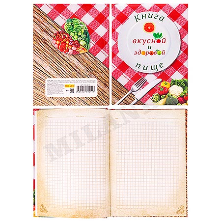 Записная книжка А5 7БЦ 128л " Миленд " О вкусной и здоровой пище, клетка, тонированный блок, сшивка, обложка - матовый ламинированный картон, поролон