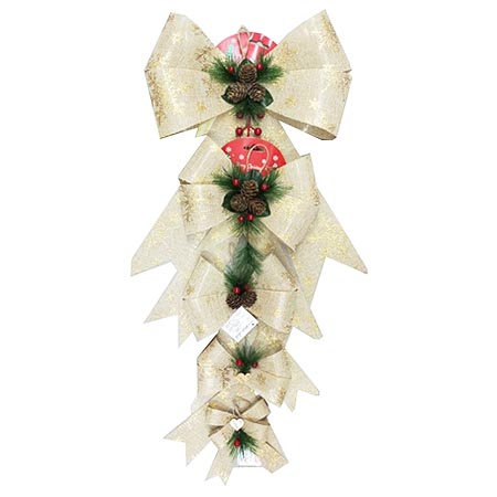 Ёлочное украшение " Миленд " бант- Новогодний, бежевый 27см, 1шт