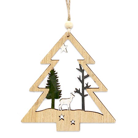 Ёлочное украшение " Миленд " подвеска- Ёлочка, деревянная с вырубкой 11см, 1шт