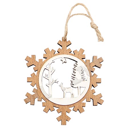 Ёлочное украшение " Миленд " подвеска объемная- Бежевая снежинка, деревянная с вырубкой 11см, 1шт