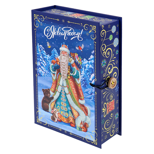 Коробка-книга " Миленд " Дед Мороз и ёлка, 12*18*5см, с пуговицей