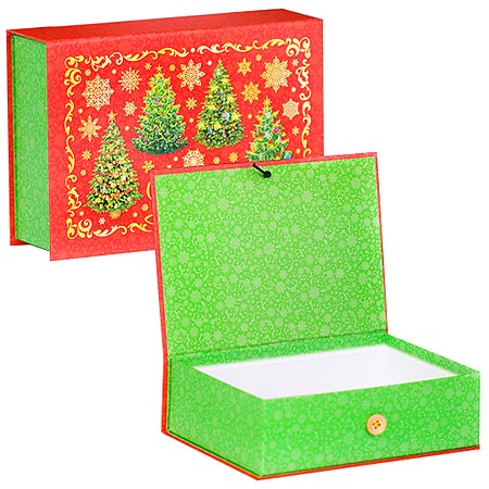 Коробка-книга " Миленд " Новогодняя- Елочки С Новым Годом 13,5*20*6см с пуговицей