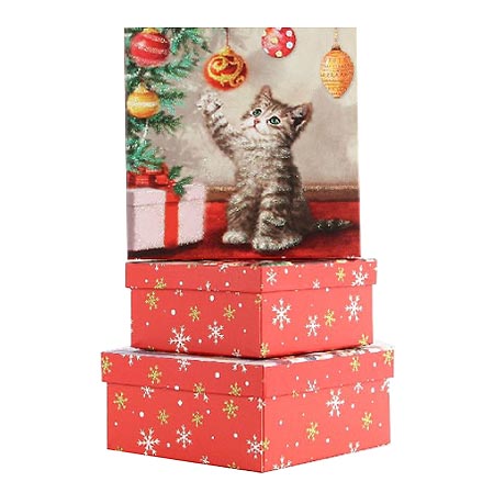 Набор коробок " Миленд " 3в1 Котенок 15,5*15,5*7,5см, 20*20*9см, глиттер