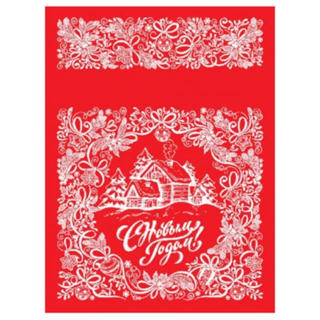 Мешочек для подарков " Миленд " Уютная избушка, красный, 24*18*9см