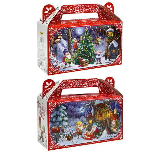 Коробка для конфет Новогодняя Сундучок " Миленд " Гномы наряжают елку, 500г, 17,8*14*6,8см