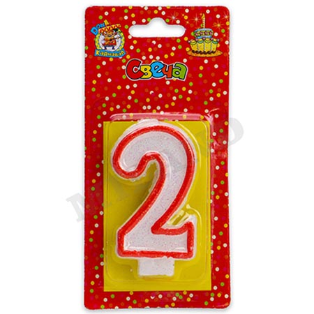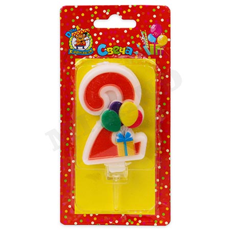 Свеча для торта цифра " Миленд " Веселый праздник Красная Цифра 2 14*6,5*1см, картонный блистер, европодвес