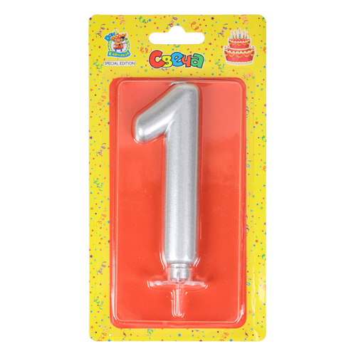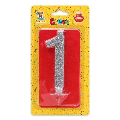 Свеча для торта цифра " Миленд " Серебрянная малая 1 14*7*1см, глиттер, картонный блистер, европодвес