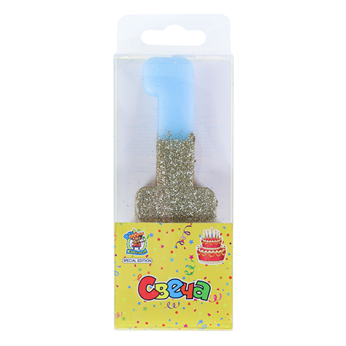 Свеча для торта цифра " Миленд " Голубая Цифра 1 13,5*4,7*1,5см, глиттер, картонный блистер, европодвес