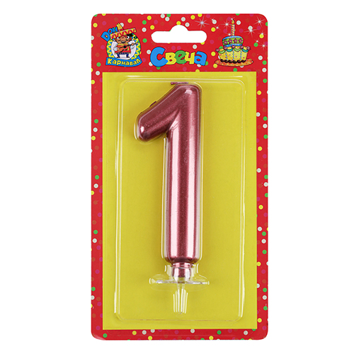 Свеча для торта цифра " Миленд " Красная Цифра 1 19*10*2см, металлик, картонный блистер, европодвес