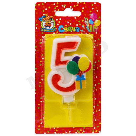 Свеча для торта цифра " Миленд " Веселый праздник Красная Цифра 5 14*6,5*1см, картонный блистер, европодвес