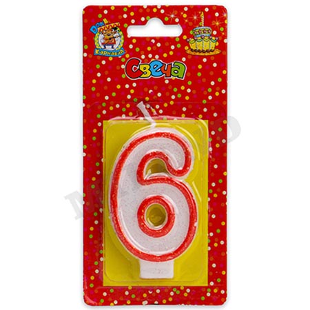 Свеча для торта цифра " Миленд " Красная окантовка 6 14*6,5*1см, блестки, картонный блистер, европодвес