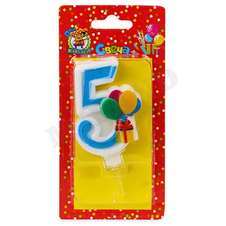 Свеча для торта цифра " Миленд " Веселый праздник Синяя Цифра 5 14*6,5*1см, картонный блистер, европодвес