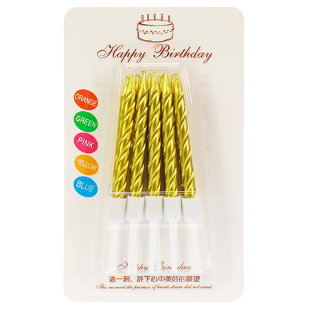 Набор свечей для торта с подставками " Миленд " Счастливый праздник, золотые, 10шт, 11,5*7*1см, картонный блистер, европодвес