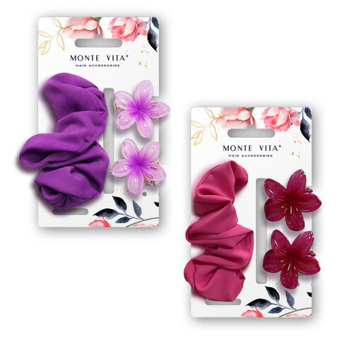 Резинки для волос (2 шт) с крабами (2 шт) и заколками (2 шт), НАБОР,ассорти,MONTE VITA, 458851