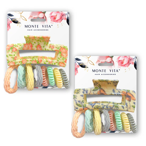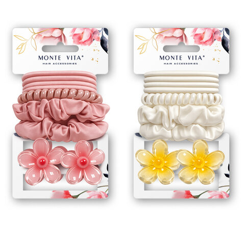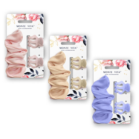 Набор для волос 12шт: 8 резинок + 4 краба, пастельные цвета, MONTE VITA 457034