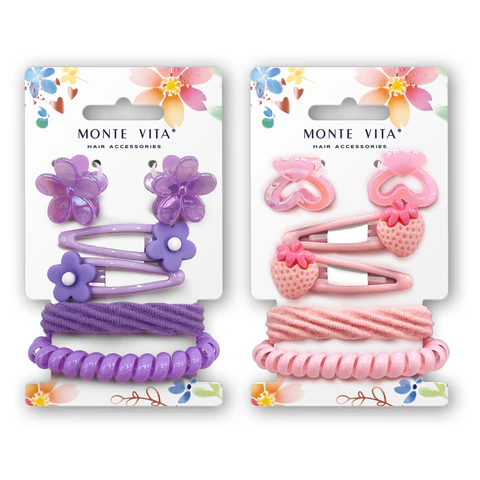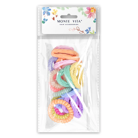 Набор для волос 24шт: 2 заколки 5 см, 2 краба 2,5 см, 20 резинок, MONTE VITA 457035