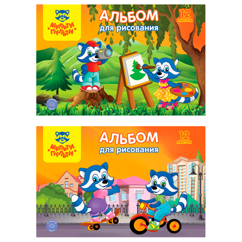Альбом для рисования 48л., А4, на склейке Мульти-Пульти "Приключения Енота", с раскраской, 120г/м2, КОМПЛЕКТ (2ШТ)